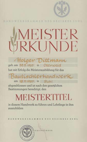 beendete Holger Dittmann die Lehre in der Bau- und Möbeltischlerei Gumpert und arbeitete fortan in der Firma seines Vaters.